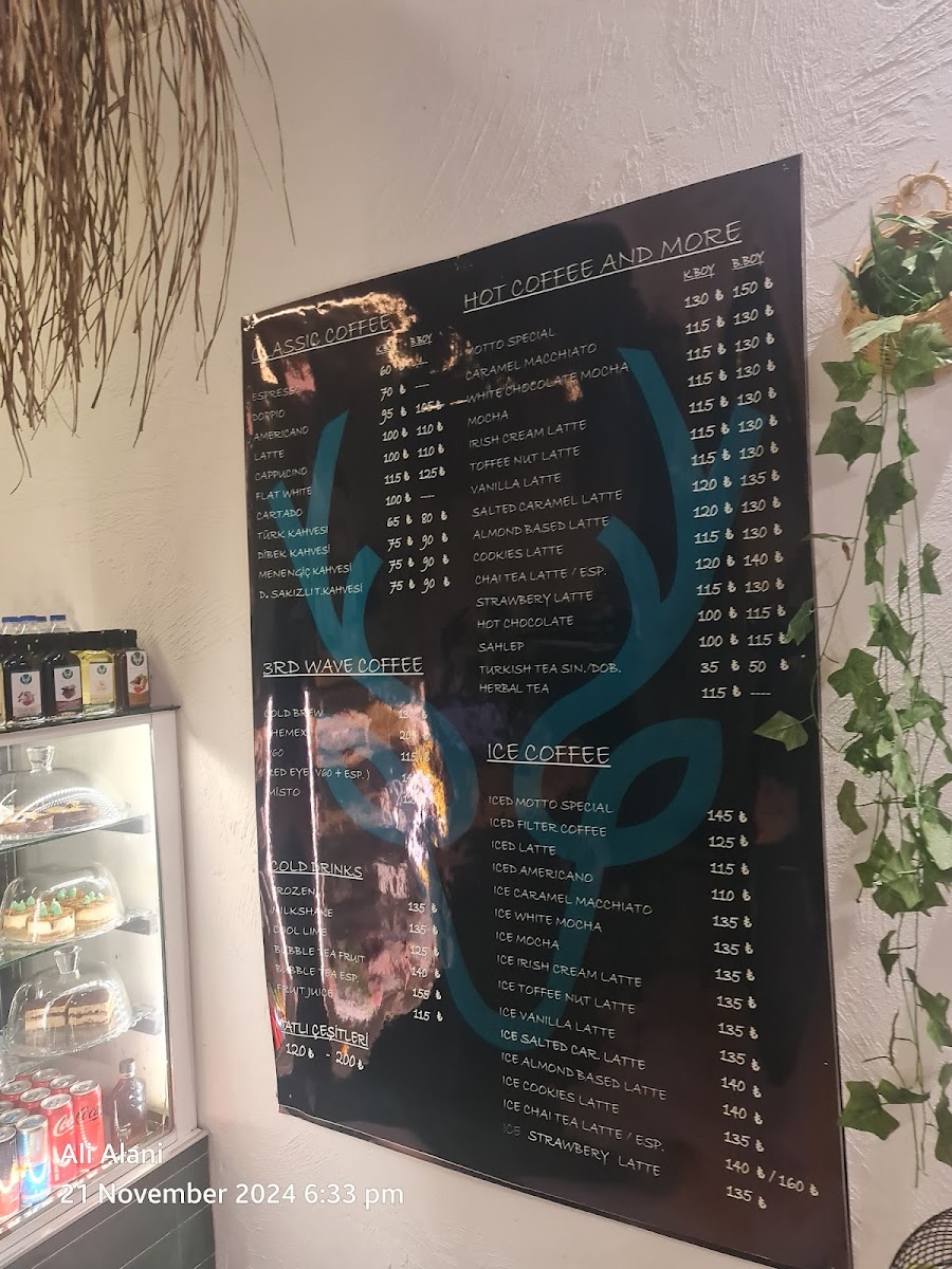Welcome to Motto Coffee House Eryaman, an enchanting café nestled in the heart of Eryaman, Ankara. Located at Şehit Osman Avcı Mah. Malazgirt 1071 Cad. No:42 BC Etimesgut, this delightful coffee shop is a sanctuary for coffee enthusiasts and anyone seeking a cozy, inviting atmosphere.